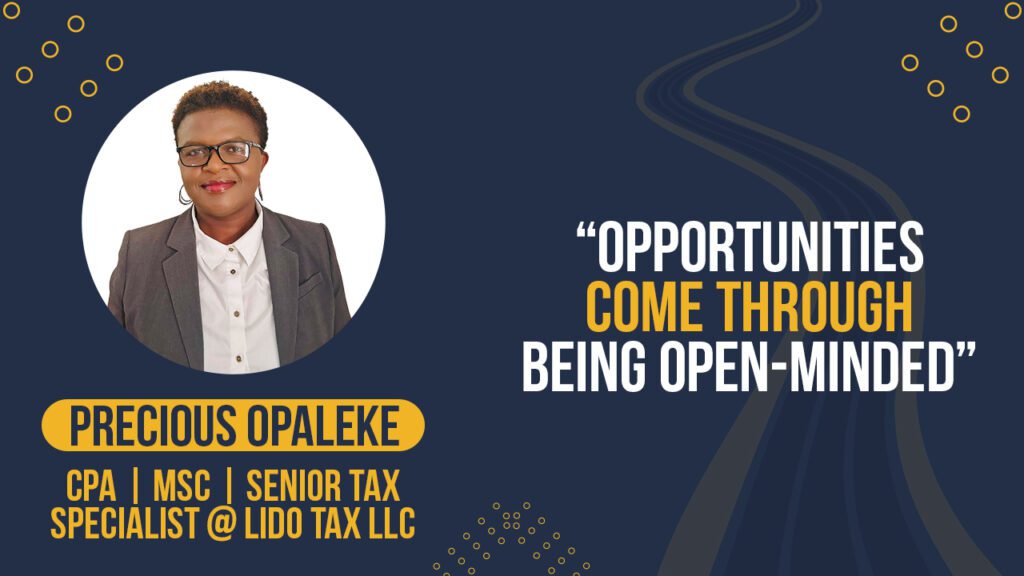 In Episode 79 of the CPA Career Paths podcast, I had the absolute pleasure of speaking with Precious Opaleke, a Senior Tax Specialist at Lido Tax LLC. From growing up and studying in England to navigating the U.S. tax system from scratch, her journey is nothing short of inspiring.