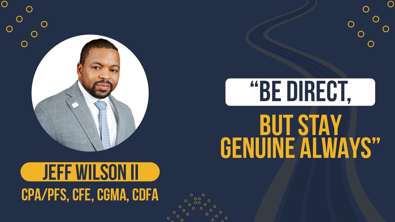 Jeff didn’t initially aim to be a CPA. “I only went into accounting to understand business,” he said. A mentor changed that. Willie Huey, CFO at Bowie State University, handed him a Wall Street Journal—and it lit a spark.